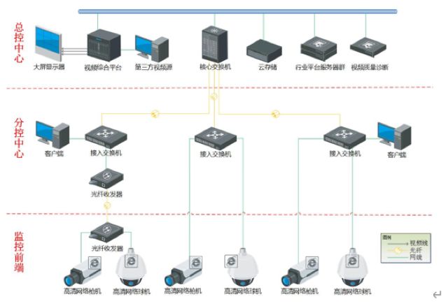 醫院安防監控系統物理拓撲如下: